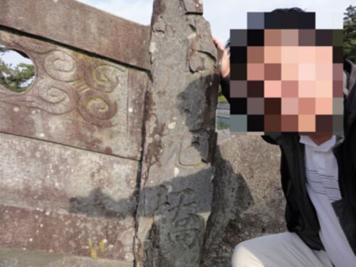 ビジネスホテル圭→徒歩→不老橋 ホテルから和歌山県立医大病院のわきを通り、旭橋を渡って、海沿いに塩釜神社を過ぎると、約20分で不老橋に到着です。今から160年前に建てられた砂岩の橋なので、親柱は崩れかけて、「不老橋」の文字もかすかに読めるか読めな…