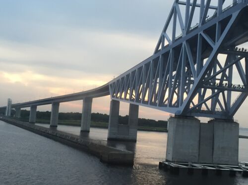 徳島港(前)11:30→オーシャン東九フェリー→6:20東京港 ゲートウエイブリッジをくぐり、東京港の防波堤を通り過ぎます。後ろを振り返るとゲートウエイブリッジが遠くに見え、前には東京のビル群やスカイツリーが見えます。東京に帰ってきたのです。着岸し、車…